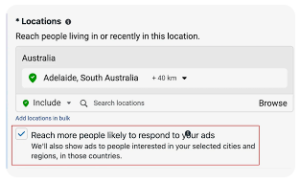 Meta automatically targets users based on their interests in specific locations, regardless of their actual residence. This option has been allowed to stay active. It may also be shaped by automatic placements, wide-ranging demographic filters, or the optimisation techniques that Facebook utilises for delivery.